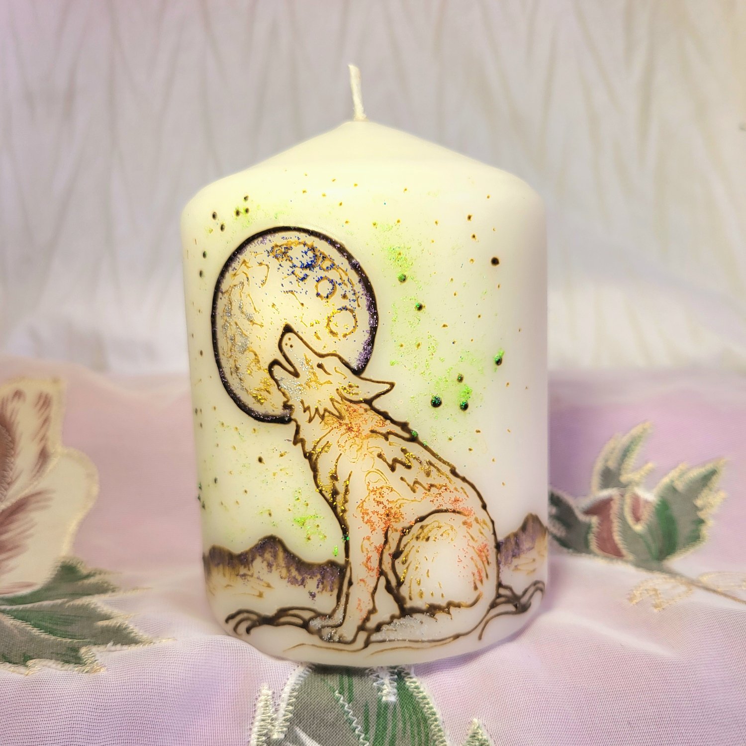3 x 4 Howling Wolf Henna Pillar Candle