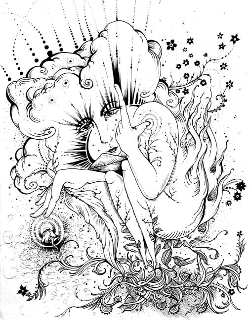 This original drawing was drawn with an archival Micron pen on a 9 x 12 80 lb. sheet of Strathmore drawing paper. Signed by the artist.
