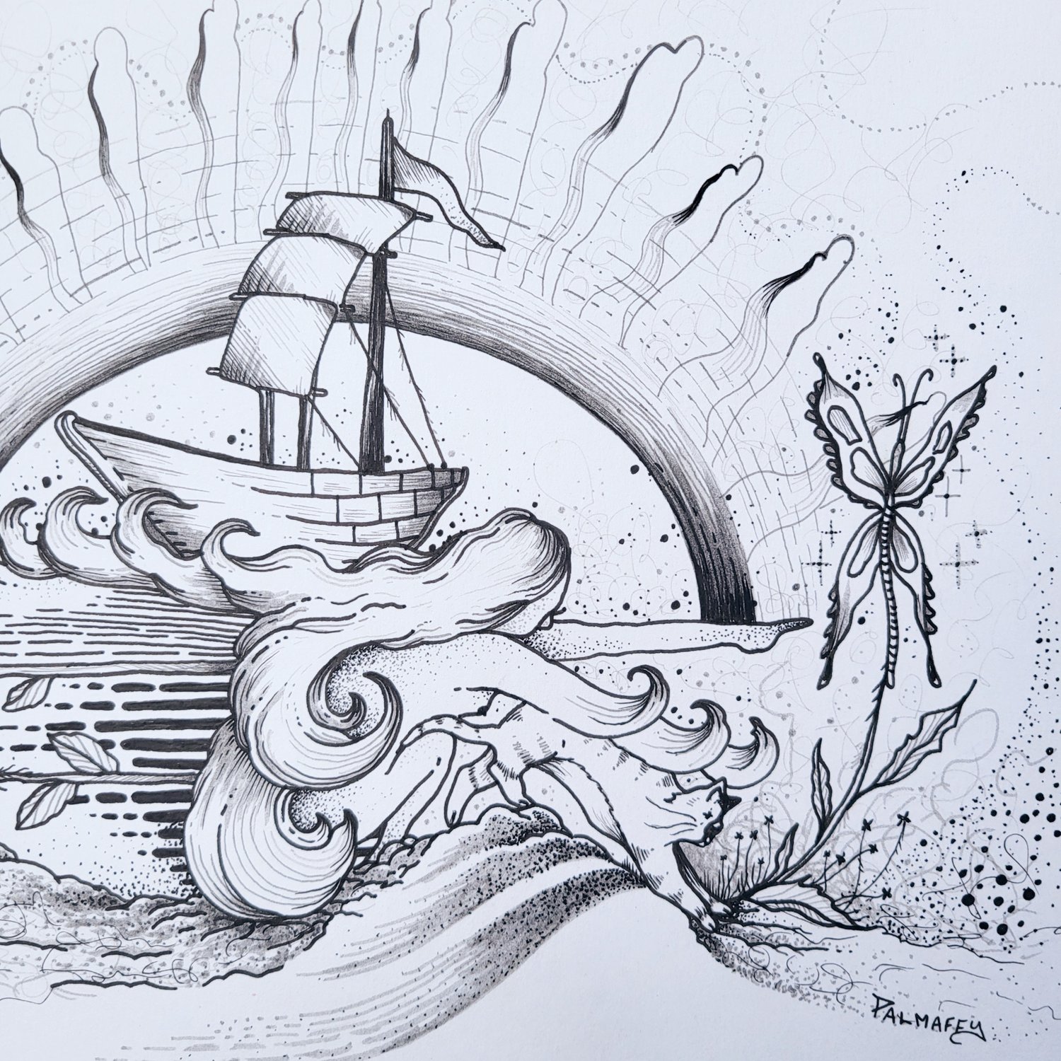 This drawing is about enjoying new possibilities & being prepared for a beautiful journey. It is about being present in the moment & not worrying about what will happen.